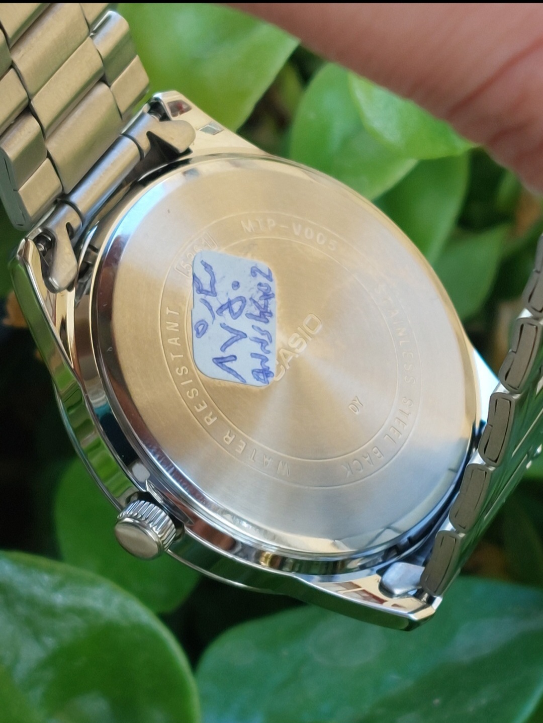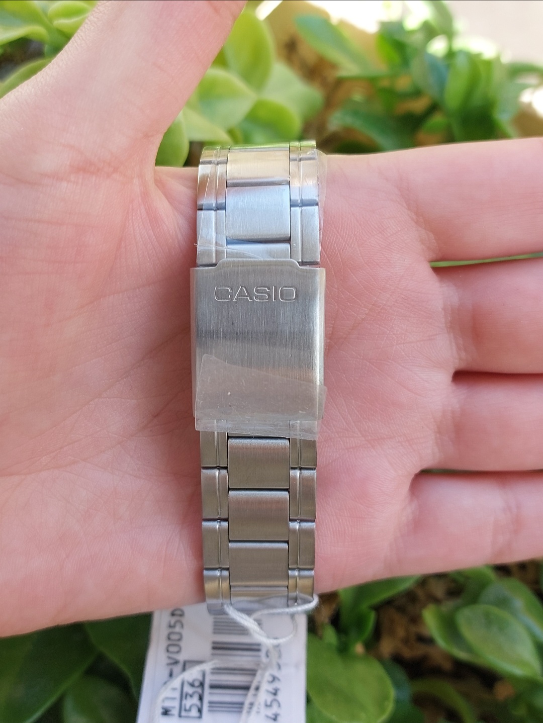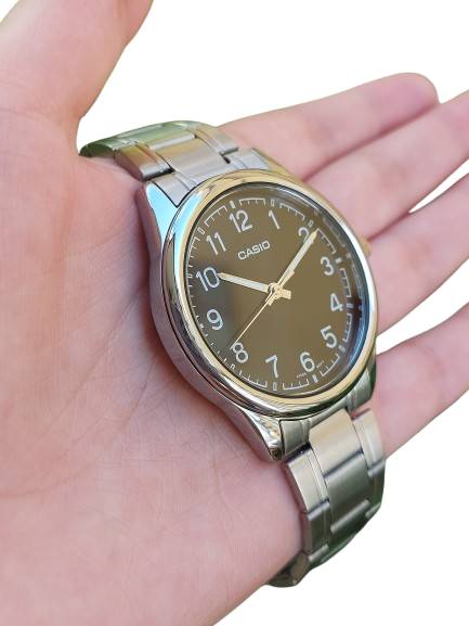 ساعت مچی کلاسیک مردانه CASIO –مدلMTP_V005D، استیل نقرهای با صفحه مشکی و با موتور ژاپن، یک انتخاب ساده، شیک و همیشه پرطرفدار. این ساعت مچی برند معتبر کاسیو (CASIO) با طراحی کلاسیک و بند استیل نقرهای، مناسب آقایانیست که به استایل مینیمال، دقیق و رسمی علاقه دارند.دارای گارانتی ۲ ساله✔️ شرکت پارس پوزیترون است.نمایش زمان به صورت آنالوگ- ۳ عقربه (ساعت، دقیقه، ثانیه)- و بند استیل ضد زنگ با قفل سهتایی. مقاوم در برابر آب تا عمق 50 متر می باشد بدین معنی که برای استفاده در سونا یا هنگام دوش آب داغ و یا غواصی و شنا مناسب نمی باشد.