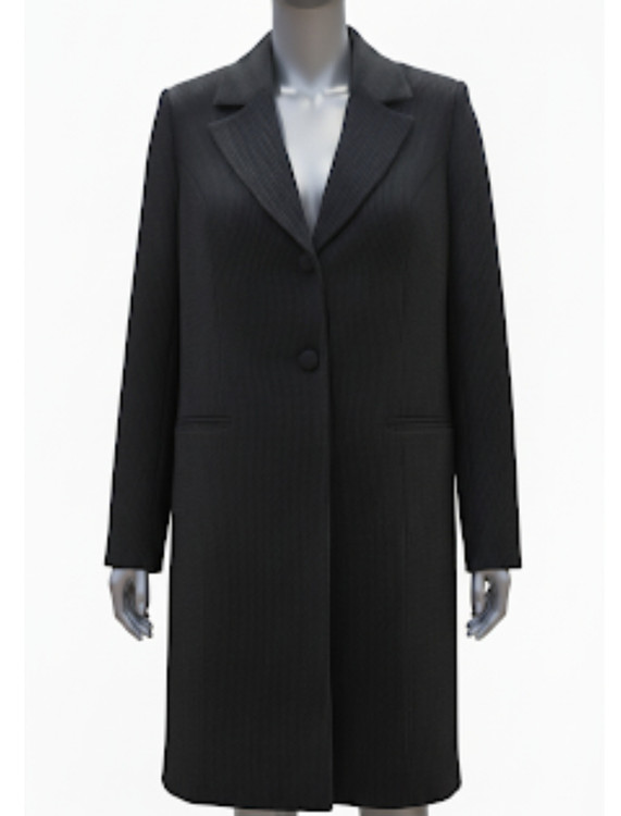مانتو دارای یقه انگلیسی و آستر دار و دکمه دار و ایستایی بالا روی تن است.