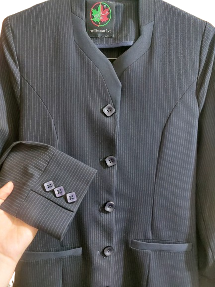 مانتو شلوار اداری سورمه ای راه دار با خطوط باریک سفید_سایز ۳۸